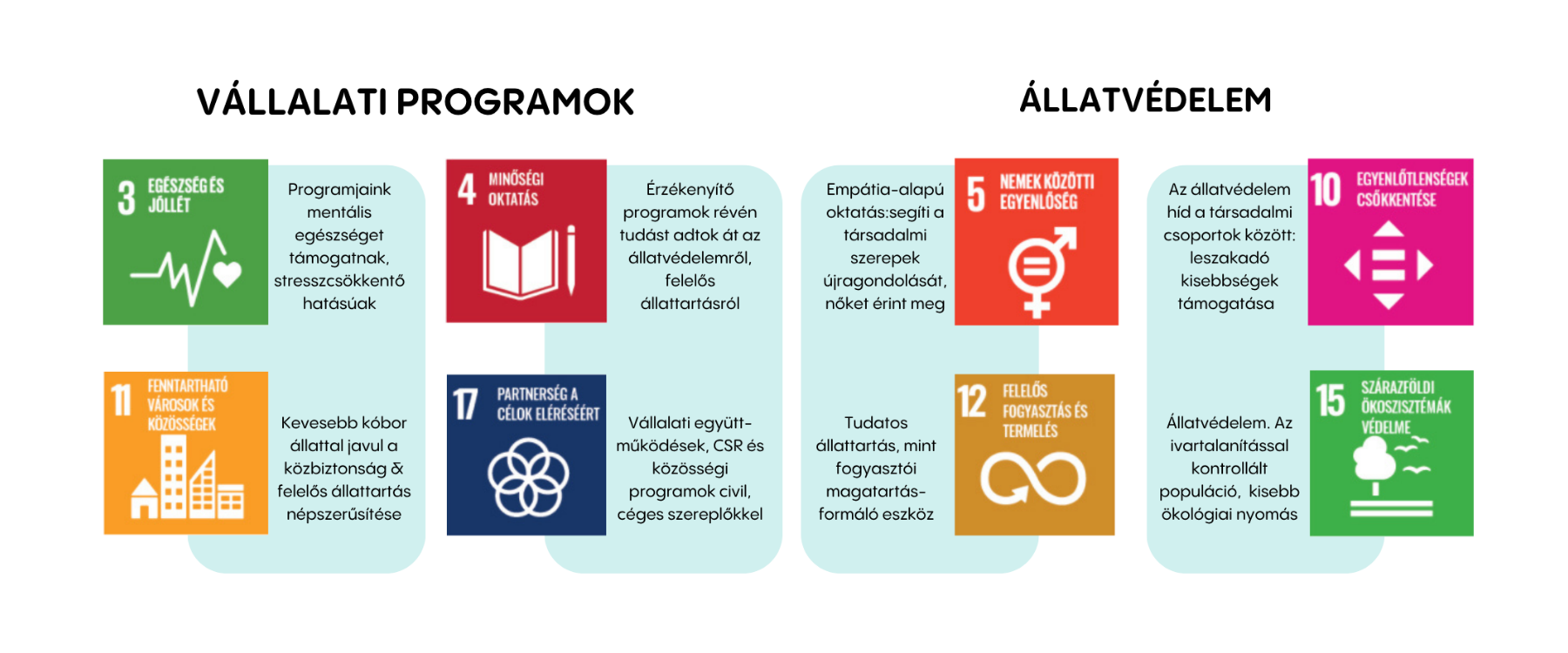 - Reputációs előny: A felelős állattartás és állatvédelem támogatása jól illeszkedik a modern vállalati elvárásokhoz, és pozitív megítélést eredményez a munkaerőpiacon és a nyilvánosságban.
